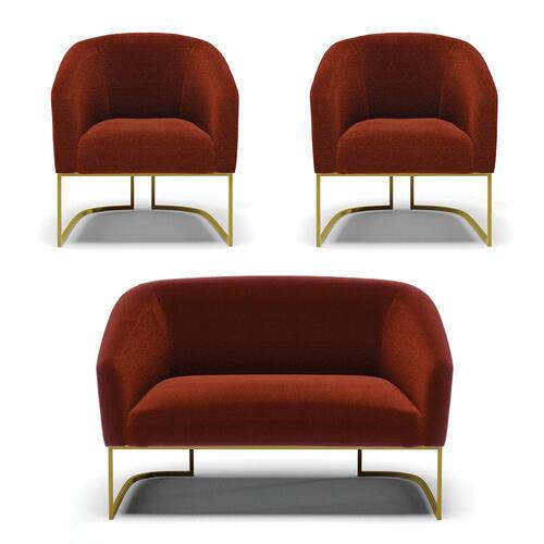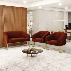 Você irá receber: 01 Sofá Namoradeira e 02 Poltronas - Entregue em: 03 Volumes