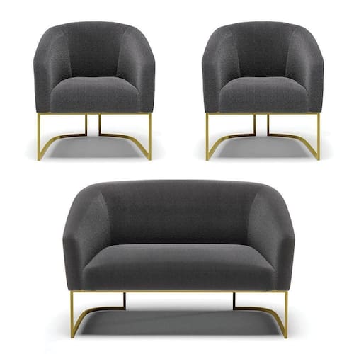 O Sofá Namoradeira 2 lugares e 2 Poltronas Stella é uma peça que combina elegância, conforto e durabilidade. Este conjunto tem um design moderno e sofisticado, com Base Industrial Dourado e revestimento em tecido Bouclê Grafite, que harmonizam com qualquer ambiente. Ele é ideal para sala de estar, recepções, mesa de jantar ou qualquer outro espaço que você queira decorar com estilo e bom gosto. Ele tem uma estrutura em madeira de reflorestamento eucalipto, que garante a resistência e a sustentabilidade do produto. Ele suporta até 120 kg de peso, podendo ser utilizado por pessoas de diferentes biotipos. Ele tem um acabamento reforçado e espuma de qualidade D23, que oferece maciez e aconchego. Tem pés em aço carbono e pintura eletrostática, que protegem o produto contra corrosão e desgaste. Ele tem assento com persintas elásticas, que proporcionam flexibilidade e conforto. O kit Stella é um produto de alta qualidade, beleza e funcionalidade. Ele é fácil de transportar, pois tem um peso leve e um tamanho compacto. O Sofá Namoradeira 2 lugares e 2 Poltronas Stella é um produto que vai fazer a diferença na sua decoração e no seu bem-estar. Ele vai trazer charme, conforto e durabilidade para o seu ambiente. Aproveite essa oferta e leve para casa um Sofá Namoradeira 2 lugares com Poltrona qualidade por um preço incrível. Essa é a sua chance de ter um kit maravilhoso por um preço imperdível. Corra e garanta seu Sofá Namoradeira 2 lugares com Potrona antes que acabe o estoque!