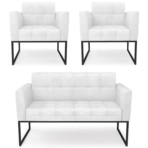 O Sofá Namoradeira e 2 Poltronas Base Industrial Preto Ana Sintético PU Branco, da Ibiza é o conjunto ideal para quem busca beleza, conforto e versatilidade. Você pode usar na sua Sala De Estar, recepção ou qualquer outro ambiente que desejar.