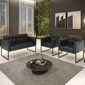 O Sofá Namoradeira e 2 Poltronas Base Industrial Preto Ana Sintético PU Preto, da Ibiza é o conjunto ideal para quem busca beleza, conforto e versatilidade. Você pode usar na sua Sala De Estar, recepção ou qualquer outro ambiente que desejar.