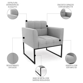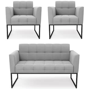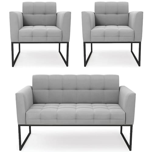 O Sofá Namoradeira e 2 Poltronas Base Industrial Preto Ana Suede Cinza, da Ibiza é o conjunto ideal para quem busca beleza, conforto e versatilidade. Você pode usar na sua Sala De Estar, recepção ou qualquer outro ambiente que desejar.