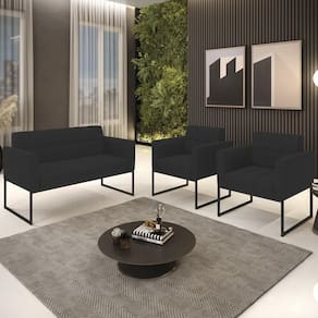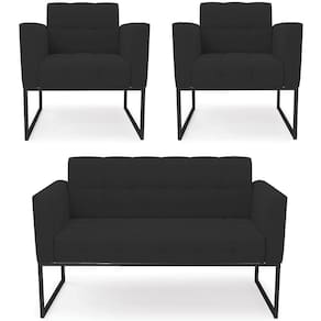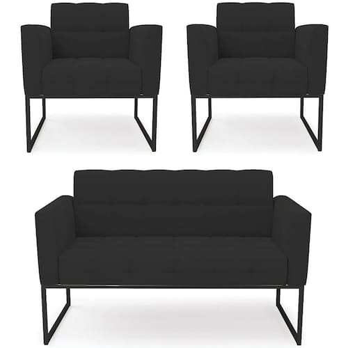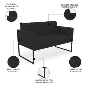 O Sofá Namoradeira e 2 Poltronas Base Industrial Preto Ana Veludo Preto, da Ibiza é o conjunto ideal para quem busca beleza, conforto e versatilidade. Você pode usar na sua Sala De Estar, recepção ou qualquer outro ambiente que desejar.
