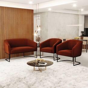 Você irá receber: 01 Sofá Namoradeira e 02 Poltronas - Entregue em: 03 Volumes
