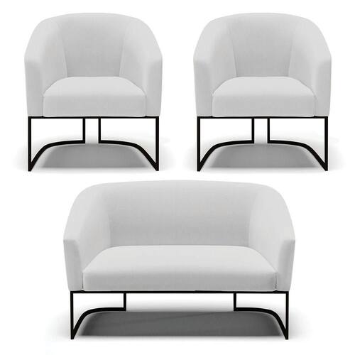 Você irá receber: 01 Sofá Namoradeira e 02 Poltronas - Entregue em: 03 Volumes