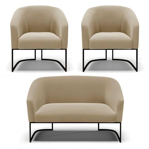 Você irá receber: 01 Sofá Namoradeira e 02 Poltronas - Entregue em: 03 Volumes