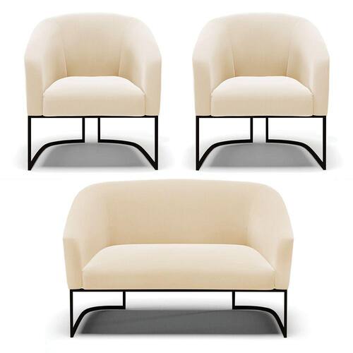 Você irá receber: 01 Sofá Namoradeira e 02 Poltronas - Entregue em: 03 Volumes