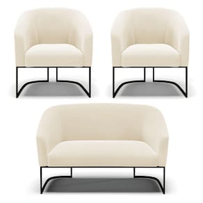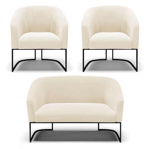 Você irá receber: 01 Sofá Namoradeira e 02 Poltronas - Entregue em: 03 Volumes