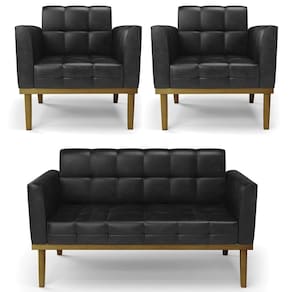 O Sofá Namoradeira e 2 Poltronas Base Madeira Castanho Ana Sintético PU Preto, da Ibiza é o conjunto ideal para quem busca beleza, conforto e versatilidade. Você pode usar na sua Sala De Estar, recepção ou qualquer outro ambiente que desejar.