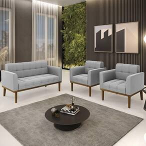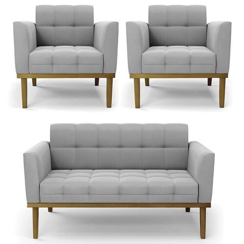 O Sofá Namoradeira e 2 Poltronas Base Madeira Castanho Ana Suede Cinza, da Ibiza é o conjunto ideal para quem busca beleza, conforto e versatilidade. Você pode usar na sua Sala De Estar, recepção ou qualquer outro ambiente que desejar.