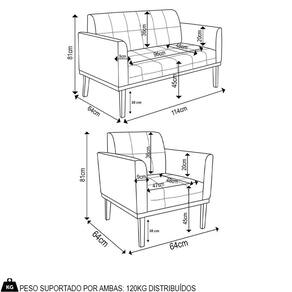 O Sofá Namoradeira e a Poltrona Decorativa são revestidos em Suede, que é fácil de limpar e valoriza o design das peças. Eles têm braços e encosto em espuma D-18 e assento em espuma D-26, que oferecem firmeza e aconchego para você relaxar. A base em madeira de eucalipto castanho é um detalhe charmoso, que dá um toque rústico e sofisticado ao conjunto. O kit tem uma estrutura resistente e suporta até 120 kg cada peça. A montagem é simples, pois as peças já vêm prontas, bastando fixar a base com os parafusos que acompanham o produto. A limpeza é prática, pois basta usar um pano limpo e levemente úmido, sem produtos abrasivos, para manter o seu kit sempre em bom estado. Hora de transformar seu ambiente com a Namoradeira 2 Lugares e a Poltrona para Sala deixando ainda mais confortável e estiloso.