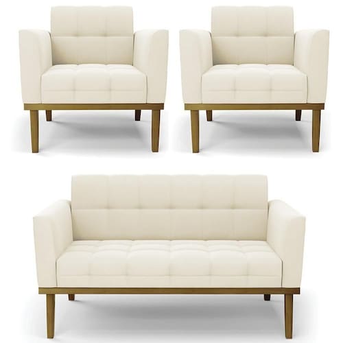 O Sofá Namoradeira e 2 Poltronas Base Madeira Castanho Ana Veludo Bege, da Ibiza é o conjunto ideal para quem busca beleza, conforto e versatilidade. Você pode usar na sua Sala De Estar, recepção ou qualquer outro ambiente que desejar.
