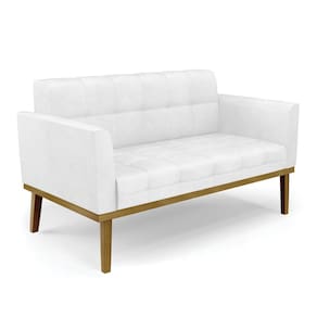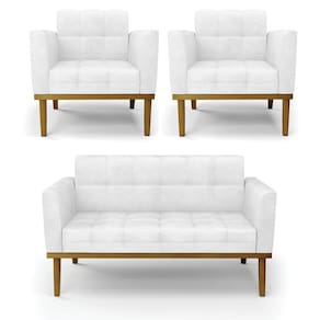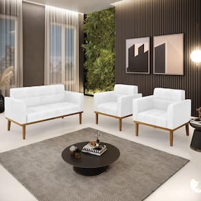 Sofá Namoradeira e 2 Poltronas Base Madeira Castanho Elisa Corano Branco D03 - D`Rossi