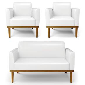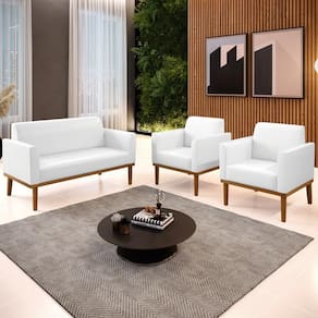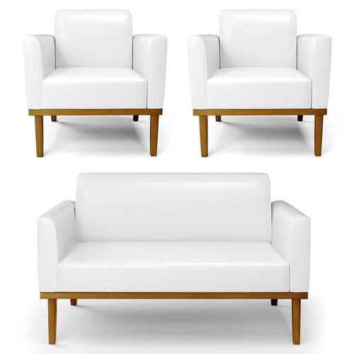 O Sofá Namoradeira e 2 Poltronas Base Madeira Castanho Maressa Sintético PU Branco, da Ibiza é o conjunto ideal para quem busca beleza, conforto e versatilidade. Você pode usar na sua Sala De Estar, recepção ou qualquer outro ambiente que desejar.
