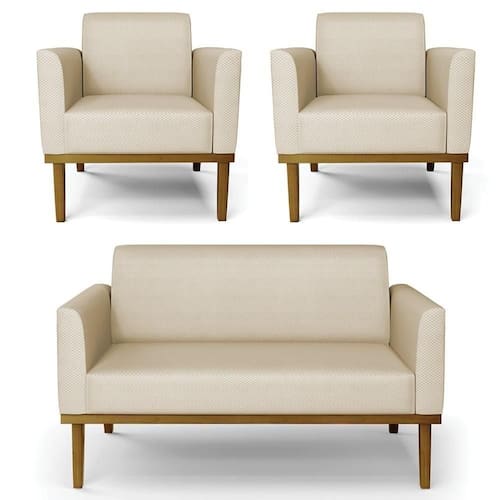 O Sofá Namoradeira e 2 Poltronas Base Madeira Castanho Maressa Veludo Luxo Off White, da Ibiza é o conjunto ideal para quem busca beleza, conforto e versatilidade. Você pode usar na sua Sala De Estar, recepção ou qualquer outro ambiente que desejar.