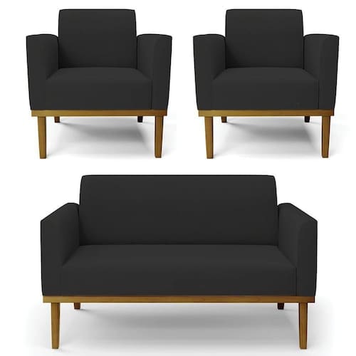 O Sofá Namoradeira e 2 Poltronas Base Madeira Castanho Maressa Veludo Preto, da Ibiza é o conjunto ideal para quem busca beleza, conforto e versatilidade. Você pode usar na sua Sala De Estar, recepção ou qualquer outro ambiente que desejar.