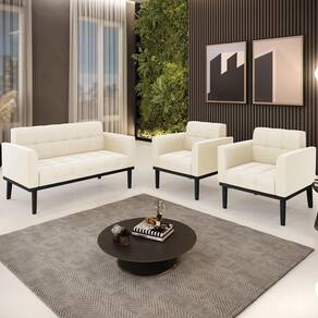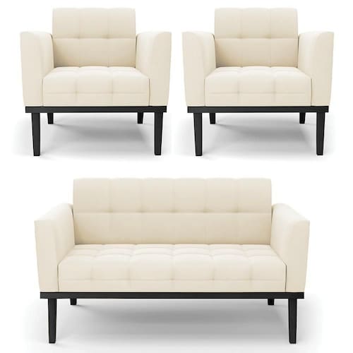 O Sofá Namoradeira e 2 Poltronas Base Madeira Preto Ana Veludo Bege, da Ibiza é o conjunto ideal para quem busca beleza, conforto e versatilidade. Você pode usar na sua Sala De Estar, recepção ou qualquer outro ambiente que desejar.