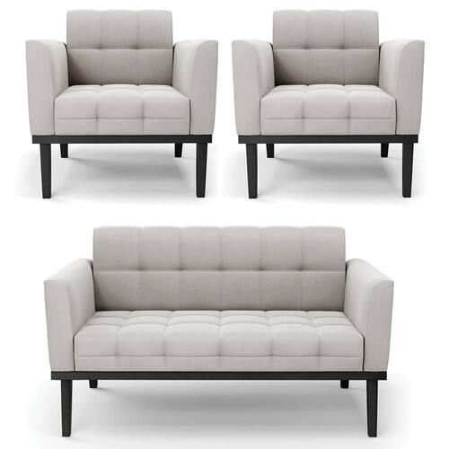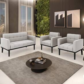 O Sofá Namoradeira e 2 Poltronas Base Madeira Preto Ana Veludo Cinza, da Ibiza é o conjunto ideal para quem busca beleza, conforto e versatilidade. Você pode usar na sua Sala De Estar, recepção ou qualquer outro ambiente que desejar.