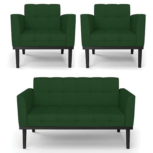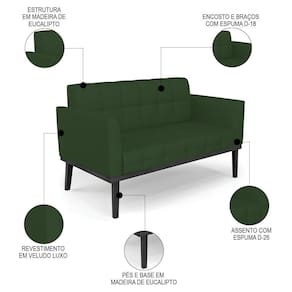 O Sofá Namoradeira e 2 Poltronas Base Madeira Preto Ana Veludo Luxo Verde, da Ibiza é o conjunto ideal para quem busca beleza, conforto e versatilidade. Você pode usar na sua Sala De Estar, recepção ou qualquer outro ambiente que desejar.