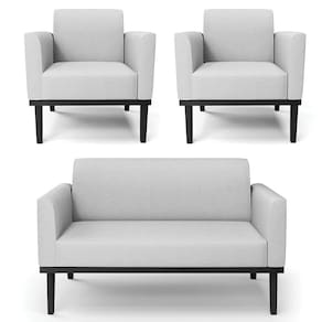 O Sofá Namoradeira e 2 Poltronas Base Madeira Preto Maressa Linho Cinza, da Ibiza é o conjunto ideal para quem busca beleza, conforto e versatilidade. Você pode usar na sua Sala De Estar, recepção ou qualquer outro ambiente que desejar.