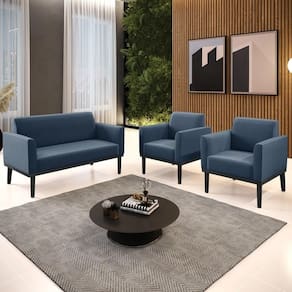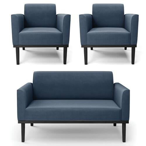 O Sofá Namoradeira e 2 Poltronas Base Madeira Preto Maressa Suede Azul Marinho, da Ibiza é o conjunto ideal para quem busca beleza, conforto e versatilidade. Você pode usar na sua Sala De Estar, recepção ou qualquer outro ambiente que desejar.