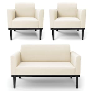 O Sofá Namoradeira e 2 Poltronas Base Madeira Preto Maressa Veludo Bege, da Ibiza é o conjunto ideal para quem busca beleza, conforto e versatilidade. Você pode usar na sua Sala De Estar, recepção ou qualquer outro ambiente que desejar.