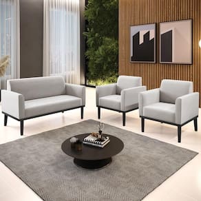 O Sofá Namoradeira e 2 Poltronas Base Madeira Preto Maressa Veludo Cinza, da Ibiza é o conjunto ideal para quem busca beleza, conforto e versatilidade. Você pode usar na sua Sala De Estar, recepção ou qualquer outro ambiente que desejar.