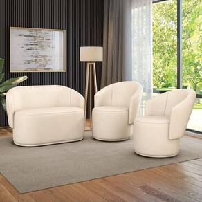 Sofá Namoradeira E 2 Poltronas Orgânica Para Sala Malu Sintético Bege M11 - D'rossi O Sofá 2 Lugares Namoradeira e 2 Poltronas Malu é uma peça que combina segurança, conforto e durabilidade. Ele tem um design orgânico que remete às formas encontradas na natureza oferecendo uma sensação de calma e equilíbrio criando um espaço acolhedor e relaxante. Além da sua simetria artística e curvas suaves, ela contém um revestimento em Sintético no tom Bege que harmoniza com qualquer ambiente. Pode ser utilizado em sala de estar, recepções, escritórios, lojas, espaços comerciais, ou qualquer outro espaço que você queira decorar com estilo e bom gosto. Ele tem uma estrutura em madeira de reflorestamento eucalipto, que garante a resistência e a sustentabilidade do produto. Ele suporta até 180 kg de peso, podendo ser utilizada por pessoas de diferentes biotipos. Ele tem um acabamento reforçado e espuma de qualidade D23, que oferece maciez e aconchego. Ele contém encosto arredondados e um assento cilíndrico resultando em um acabamento impecável conferindo muito mais valor e elegância ao produto. As sapatas plásticas (fixa) são pequenas proteções colocadas na base dos pés para evitar que eles risquem ou danifiquem o chão. O Sofá 2 Lugares Namoradeira e 2 Poltronas Malu é um kit de alta qualidade, que exala sofisticação e conforto. Ele é fácil de transportar, pois tem um peso leve e um tamanho compacto. Ele vai trazer charme, conforto incomparável e durabilidade para o seu ambiente. Corra e garanta seu Sofá 2 Lugares Namoradeira e 2 Poltronas Malu agora mesmo! Dimensões da Poltrona: Altura Total: 80 cm Largura Total: 70 cm Profundidade Total: 74 cm Altura do Encosto: 40 cm Largura do Assento: 57 cm Profundidade do Assento: 70 cm Altura do chão ao Assento: 45 cm Espessura do Assento: 45 cm Espessura do braço: 10 cm Tamanho dos pés: 5 cm Peso: 14 kg Dimensões da Namoradeira: Altura Total: 80 cm Largura Total: 135 cm Profundidade Total: 74 cm Altura do Encosto: 40 cm Largura Livre do Assento: 125 cm Profundidade do Assento: 54 cm Altura do chão ao Assento: 45 cm Espessura do Assento: 45 cm Espessura do braço: 10 cm Tamanho dos pés: 5 kg Peso: 20 kg Especificações do Produto: Estrutura: Madeira Eucalipto Espuma: D-23 Revestimento: Sintético Peso Suportado: Até 180 Kg Material dos Pés: Sapatas Plásticas (fixa) Tipo de Pés da Namoradeira: Pés Palito de Madeira Tipo de Encosto: Fixo Montagem: O produto vai montado Garantia: 90 dias contra defeito de fabricação Instruções de Limpeza: Utilizar um pano limpo e levemente úmido Quantidade de Volumes: 3 Caixas Medida das Embalagens: Caixa 1: 83 cm x 71 cm x 75 cm; Caixa 2: 83 cm x 71 cm x 75 cm e Caixa 3: 83 cm x 138 cm x 78 cm Entrega: É feita somente até o térreo ou portaria. Não levamos em andares superiores. Confira sempre as medidas das embalagens.