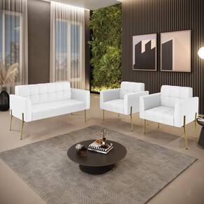 Sofá Namoradeira e 2 Poltronas Pé de Ferro Dourado Elisa Corino Branco D03 - D`Rossi