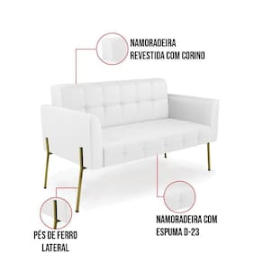 Você gosta de colecionar vários momentos memoráveis com sua família e amigos? Que tal recebê-los, com móveis de altíssima qualidade que só a D'Rossi tem? O Sofá Sofá Namoradeira e Poltrona Elisa é adequado para você! Seu design retrô é a grande tendência do momento. Pode ser utilizado em diversos espaços da casa, em salas, hall de entrada, quartos, cozinhas, varanda, sacada, escritório, dentre outros. Contém as seguintes características: A estrutura é feita Madeira de Eucalipto 100% de reflorestamento, e o Pé de Ferro Fixa Preto, além de ser resistente e durável, suporta em média até 120 kg. Assento, encosto e braços, contém enchimento de espuma D-23 e é estofada em tecido Corino, no tom Branco, que oferece muito conforto e resistência ao sentar, com aquela sensação de maciez e aconchego. Possui também, detalhes de costura no encosto e assento, resultando em um acabamento impecável, conferindo muito mais valor e elegância ao seu espaço. Para complementar a decoração com esse lindo Kit Sofá Namoradeira e Poltrona Elisa, a dica é utilizar mantas, almofadas ou vasinho de flor. E pronto, seu cantinho estará perfeito para descansar e relaxar! Aqui, você encontra várias opções, para que seus amigos e familiares se sintam acolhidos. Garanta já seu Kit Sofá Namoradeira e 2 Poltronas Elisa.