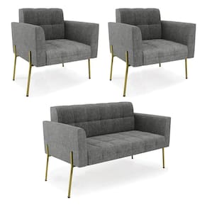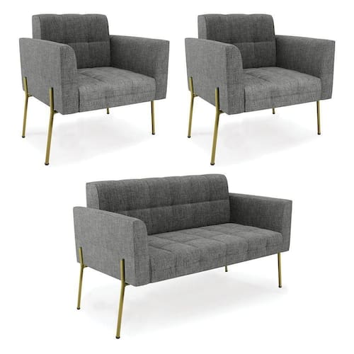 Você gosta de colecionar vários momentos memoráveis com sua família e amigos? Que tal recebê-los, com móveis de altíssima qualidade que só a D'Rossi tem? O Sofá Sofá Namoradeira e Poltrona Elisa é adequado para você! Seu design retrô é a grande tendência do momento. Pode ser utilizado em diversos espaços da casa, em salas, hall de entrada, quartos, cozinhas, varanda, sacada, escritório, dentre outros. Contém as seguintes características: A estrutura é feita Madeira de Eucalipto 100% de reflorestamento, e o Pé de Ferro Fixa Preto, além de ser resistente e durável, suporta em média até 120 kg. Assento, encosto e braços, contém enchimento de espuma D-23 e é estofada em tecido Linho, no tom Grafite, que oferece muito conforto e resistência ao sentar, com aquela sensação de maciez e aconchego. Possui também, detalhes de costura no encosto e assento, resultando em um acabamento impecável, conferindo muito mais valor e elegância ao seu espaço. Para complementar a decoração com esse lindo Kit Sofá Namoradeira e Poltrona Elisa, a dica é utilizar mantas, almofadas ou vasinho de flor. E pronto, seu cantinho estará perfeito para descansar e relaxar! Aqui, você encontra várias opções, para que seus amigos e familiares se sintam acolhidos. Garanta já seu Kit Sofá Namoradeira e 2 Poltronas Elisa.