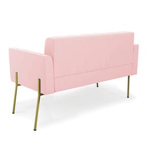 Sofá Namoradeira E 2 Poltronas Pé De Ferro Dourado Elisa Suede D03 - D'rossi Cor Rosa Bebê