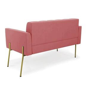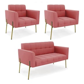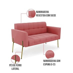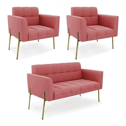 Sofá Namoradeira E 2 Poltronas Pé De Ferro Dourado Elisa Suede D03 - D'rossi Cor Rose