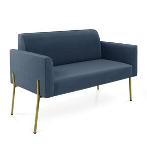 Sofá Namoradeira E 2 Poltronas Pé De Ferro Dourado Marisa Suede D03 Azul Marinho - Blush