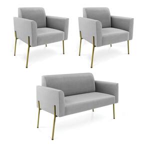 Todo mundo gosta de um ambiente bem decorado, e se for novidade melhor ainda não é mesmo? A D'Rossi, além de entregar beleza, qualidade e confiança aos clientes, ela dispõe das melhores opções em produtos, disponíveis no mercado! Portanto, se você quer um produto sofisticado, opte pelo Sofá Namoradeira e Poltrona. Ele possui um design lindo e sofisticado, com pés de Ferro Lateral Dourado e revestimento em tecido Suede, que harmonizam com qualquer ambiente. Esta mobília fica perfeita na sala de estar, recepções, mesa de jantar ou qualquer outro espaço que você queira decorar com estilo e bom gosto. Ela contém uma estrutura em madeira de reflorestamento eucalipto, que garante a resistência e a sustentabilidade do produto. Ela suporta até 120 kg de peso, podendo ser utilizada por pessoas de diferentes biotipos. Ela tem um acabamento reforçado e espuma de qualidade D-23, garantindo flexibilidade e conforto ao usuário. O Sofá Namoradeira e Poltrona Marisa é um produto de alta qualidade, beleza e funcionalidade. Ele é fácil de transportar, pois tem um peso leve e um tamanho compacto. O Sofá Namoradeira e 2 Poltronas Marisa é ideal, para dar aquele realce que seu ambiente precisa. Tenho certeza que esse móvel é a melhor compra que você irá fazer. Garanta já seu Sofá Namoradeira e 2 Poltronas Marisa e se acomode da melhor maneira possível! Dimensões do Sofá Namoradeira: Altura total: 81 cm Largura total: 114 cm Profundidade total: 64 cm Altura do encosto: 36 cm Largura do assento: 96 cm Profundidade do assento: 48 cm Altura do chão ao assento: 45 cm Espessura do assento: 18 cm Tamanho dos pés: 30 cm Espessura do braço: 9 cm Peso: 21 kg Dimensões da Poltrona: Altura total: 81 cm Largura total: 64 cm Profundidade total: 64 cm Altura do encosto: 36 cm Largura do assento: 47 cm Profundidade do assento: 48 cm Altura do chão ao assento: 45 cm Espessura do assento: 18 cm Tamanho dos pés: 30 cm Espessura do braço: 9 cm Peso: 14 kg Especificações do Produto Estrutura: Madeira Eucalipto Espuma: D-23 Tecido: Suede Tipo de pés: Pés de Ferro Dourado Peso suportado: Até 120 Kg Garantia: 90 dias contra defeito de fabricação Montagem: O produto vai montado, apenas parafusar a base Instruções de limpeza: Utilizar um pano limpo e levemente úmido Você irá receber: 01 Sofá Namoradeira e 02 Poltronas - Entregue em 03 Volumes