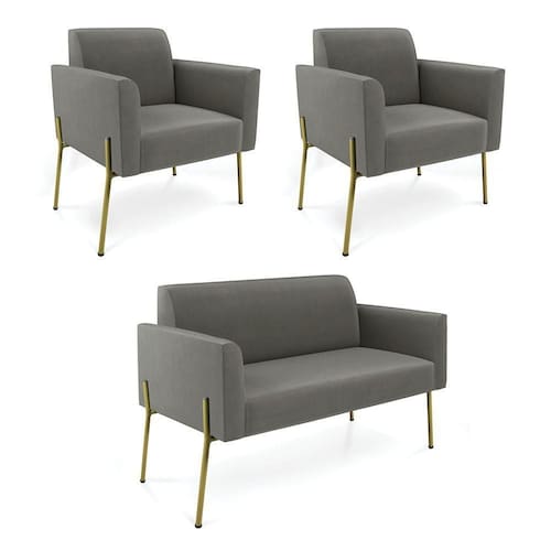 Todo mundo gosta de um ambiente bem decorado, e se for novidade melhor ainda não é mesmo? A D'Rossi, além de entregar beleza, qualidade e confiança aos clientes, ela dispõe das melhores opções em produtos, disponíveis no mercado! Portanto, se você quer um produto sofisticado, opte pelo Sofá Namoradeira e Poltrona. Ele possui um design lindo e sofisticado, com pés de Ferro Lateral Dourado e revestimento em tecido Suede, que harmonizam com qualquer ambiente. Esta mobília fica perfeita na sala de estar, recepções, mesa de jantar ou qualquer outro espaço que você queira decorar com estilo e bom gosto. Ela contém uma estrutura em madeira de reflorestamento eucalipto, que garante a resistência e a sustentabilidade do produto. Ela suporta até 120 kg de peso, podendo ser utilizada por pessoas de diferentes biotipos. Ela tem um acabamento reforçado e espuma de qualidade D-23, garantindo flexibilidade e conforto ao usuário. O Sofá Namoradeira e Poltrona Marisa é um produto de alta qualidade, beleza e funcionalidade. Ele é fácil de transportar, pois tem um peso leve e um tamanho compacto. O Sofá Namoradeira e 2 Poltronas Marisa é ideal, para dar aquele realce que seu ambiente precisa. Tenho certeza que esse móvel é a melhor compra que você irá fazer. Garanta já seu Sofá Namoradeira e 2 Poltronas Marisa e se acomode da melhor maneira possível! Dimensões do Sofá Namoradeira: Altura total: 81 cm Largura total: 114 cm Profundidade total: 64 cm Altura do encosto: 36 cm Largura do assento: 96 cm Profundidade do assento: 48 cm Altura do chão ao assento: 45 cm Espessura do assento: 18 cm Tamanho dos pés: 30 cm Espessura do braço: 9 cm Peso: 21 kg Dimensões da Poltrona: Altura total: 81 cm Largura total: 64 cm Profundidade total: 64 cm Altura do encosto: 36 cm Largura do assento: 47 cm Profundidade do assento: 48 cm Altura do chão ao assento: 45 cm Espessura do assento: 18 cm Tamanho dos pés: 30 cm Espessura do braço: 9 cm Peso: 14 kg Especificações do Produto Estrutura: Madeira Eucalipto Espuma: D-23 Tecido: Suede Tipo de pés: Pés de Ferro Dourado Peso suportado: Até 120 Kg Garantia: 90 dias contra defeito de fabricação Montagem: O produto vai montado, apenas parafusar a base Instruções de limpeza: Utilizar um pano limpo e levemente úmido Você irá receber: 01 Sofá Namoradeira e 02 Poltronas - Entregue em 03 Volumes