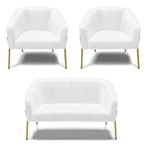 Você irá receber: 01 Sofá Namoradeira e 02 Poltronas - Entregue em: 02 Volumes