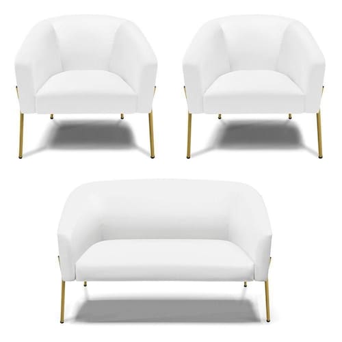 O Sofá Namoradeira 2 lugares com 2 Poltronas Stella é uma peça que combina elegância, conforto e durabilidade. Este conjunto tem um design moderno e sofisticado, com pés de ferro lateral dourado e revestimento em tecido Corino, que harmonizam com qualquer ambiente. Ele é ideal para sala de estar, recepções, mesa de jantar ou qualquer outro espaço que você queira decorar com estilo e bom gosto. Ele tem uma estrutura em madeira de reflorestamento eucalipto, que garante a resistência e a sustentabilidade do produto. Ele suporta até 120 kg de peso, podendo ser utilizado por pessoas de diferentes biotipos. Ele tem um acabamento reforçado e espuma de qualidade D23, que oferece maciez e aconchego. Tem pés em aço carbono e pintura eletrostática, que protegem o produto contra corrosão e desgaste. Ele tem assento com persintas elásticas, que proporcionam flexibilidade e conforto. O kit Stella é um produto de alta qualidade, beleza e funcionalidade. Ele é fácil de transportar, pois tem um peso leve e um tamanho compacto. O Sofá Namoradeira 2 lugares com Poltrona Stella é um produto que vai fazer a diferença na sua decoração e no seu bem-estar. Ele vai trazer charme, conforto e durabilidade para o seu ambiente. Aproveite essa oferta e leve para casa um Sofá Namoradeira 2 lugares com Poltrona qualidade por um preço incrível. Essa é a sua chance de ter um kit maravilhoso por um preço imperdível. Corra e garanta seu Sofá Namoradeira 2 lugares com 2 Poltronas antes que acabe o estoque!