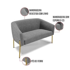 Sofá Namoradeira E 2 Poltronas Pé De Ferro Dourado Stella Linho D03 - D'rossi Cor A26 Grafite