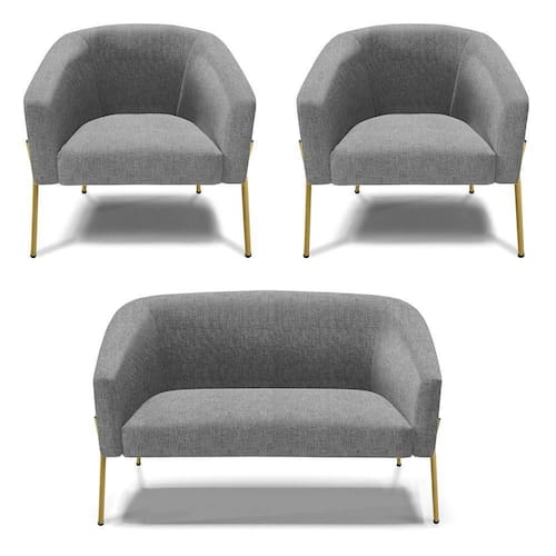 O Sofá Namoradeira 2 lugares com 2 Poltronas Stella é uma peça que combina elegância, conforto e durabilidade. Este conjunto tem um design moderno e sofisticado, com pés de ferro lateral dourado e revestimento em tecido Linho Grafite, que harmonizam com qualquer ambiente. Ele é ideal para sala de estar, recepções, mesa de jantar ou qualquer outro espaço que você queira decorar com estilo e bom gosto. Ele tem uma estrutura em madeira de reflorestamento eucalipto, que garante a resistência e a sustentabilidade do produto. Ele suporta até 120 kg de peso, podendo ser utilizado por pessoas de diferentes biotipos. Ele tem um acabamento reforçado e espuma de qualidade D23, que oferece maciez e aconchego. Tem pés em aço carbono e pintura eletrostática, que protegem o produto contra corrosão e desgaste. Ele tem assento com persintas elásticas, que proporcionam flexibilidade e conforto. O kit Stella é um produto de alta qualidade, beleza e funcionalidade. Ele é fácil de transportar, pois tem um peso leve e um tamanho compacto. O Sofá Namoradeira 2 lugares com Poltrona Stella é um produto que vai fazer a diferença na sua decoração e no seu bem-estar. Ele vai trazer charme, conforto e durabilidade para o seu ambiente. Aproveite essa oferta e leve para casa um Sofá Namoradeira 2 lugares com Poltrona qualidade por um preço incrível. Essa é a sua chance de ter um kit maravilhoso por um preço imperdível. Corra e garanta seu Sofá Namoradeira 2 lugares com 2 Poltronas antes que acabe o estoque!