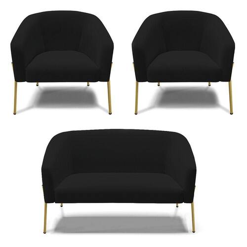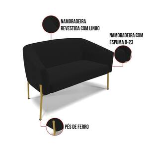 O Sofá Namoradeira 2 lugares com 2 Poltronas Stella é uma peça que combina elegância, conforto e durabilidade. Este conjunto tem um design moderno e sofisticado, com pés de ferro lateral dourado e revestimento em tecido Linho Preto, que harmonizam com qualquer ambiente. Ele é ideal para sala de estar, recepções, mesa de jantar ou qualquer outro espaço que você queira decorar com estilo e bom gosto. Ele tem uma estrutura em madeira de reflorestamento eucalipto, que garante a resistência e a sustentabilidade do produto. Ele suporta até 120 kg de peso, podendo ser utilizado por pessoas de diferentes biotipos. Ele tem um acabamento reforçado e espuma de qualidade D23, que oferece maciez e aconchego. Tem pés em aço carbono e pintura eletrostática, que protegem o produto contra corrosão e desgaste. Ele tem assento com persintas elásticas, que proporcionam flexibilidade e conforto. O kit Stella é um produto de alta qualidade, beleza e funcionalidade. Ele é fácil de transportar, pois tem um peso leve e um tamanho compacto. O Sofá Namoradeira 2 lugares com Poltrona Stella é um produto que vai fazer a diferença na sua decoração e no seu bem-estar. Ele vai trazer charme, conforto e durabilidade para o seu ambiente. Aproveite essa oferta e leve para casa um Sofá Namoradeira 2 lugares com Poltrona qualidade por um preço incrível. Essa é a sua chance de ter um kit maravilhoso por um preço imperdível. Corra e garanta seu Sofá Namoradeira 2 lugares com 2 Poltronas antes que acabe o estoque!