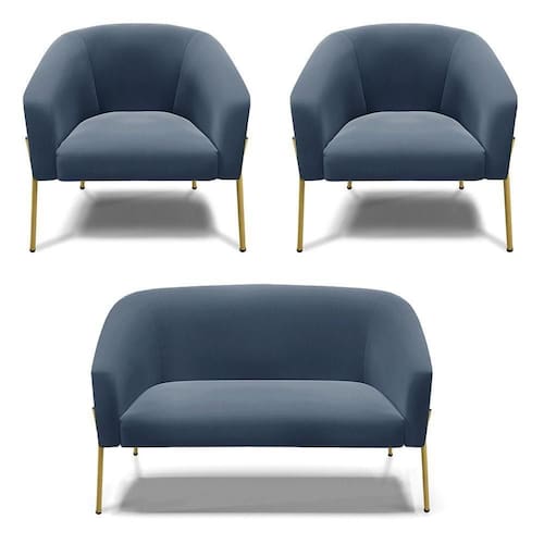 O Sofá Namoradeira 2 lugares com 2 Poltronas Stella é uma peça que combina elegância, conforto e durabilidade. Este conjunto tem um design moderno e sofisticado, com pés de ferro lateral dourado e revestimento em tecido Suede, que harmonizam com qualquer ambiente. Ele é ideal para sala de estar, recepções, mesa de jantar ou qualquer outro espaço que você queira decorar com estilo e bom gosto. Ele tem uma estrutura em madeira de reflorestamento eucalipto, que garante a resistência e a sustentabilidade do produto. Ele suporta até 120 kg de peso, podendo ser utilizado por pessoas de diferentes biotipos. Ele tem um acabamento reforçado e espuma de qualidade D23, que oferece maciez e aconchego. Tem pés em aço carbono e pintura eletrostática, que protegem o produto contra corrosão e desgaste. Ele tem assento com persintas elásticas, que proporcionam flexibilidade e conforto. O kit Stella é um produto de alta qualidade, beleza e funcionalidade. Ele é fácil de transportar, pois tem um peso leve e um tamanho compacto. O Sofá Namoradeira 2 lugares com Poltrona Stella é um produto que vai fazer a diferença na sua decoração e no seu bem-estar. Ele vai trazer charme, conforto e durabilidade para o seu ambiente. Aproveite essa oferta e leve para casa um Sofá Namoradeira 2 lugares com Poltrona qualidade por um preço incrível. Essa é a sua chance de ter um kit maravilhoso por um preço imperdível. Corra e garanta seu Sofá Namoradeira 2 lugares com 2 Poltronas antes que acabe o estoque!