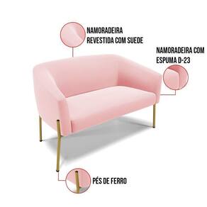 O Sofá Namoradeira 2 lugares com 2 Poltronas Stella é uma peça que combina elegância, conforto e durabilidade. Este conjunto tem um design moderno e sofisticado, com pés de ferro lateral dourado e revestimento em tecido Suede, que harmonizam com qualquer ambiente. Ele é ideal para sala de estar, recepções, mesa de jantar ou qualquer outro espaço que você queira decorar com estilo e bom gosto. Ele tem uma estrutura em madeira de reflorestamento eucalipto, que garante a resistência e a sustentabilidade do produto. Ele suporta até 120 kg de peso, podendo ser utilizado por pessoas de diferentes biotipos. Ele tem um acabamento reforçado e espuma de qualidade D23, que oferece maciez e aconchego. Tem pés em aço carbono e pintura eletrostática, que protegem o produto contra corrosão e desgaste. Ele tem assento com persintas elásticas, que proporcionam flexibilidade e conforto. O kit Stella é um produto de alta qualidade, beleza e funcionalidade. Ele é fácil de transportar, pois tem um peso leve e um tamanho compacto. O Sofá Namoradeira 2 lugares com Poltrona Stella é um produto que vai fazer a diferença na sua decoração e no seu bem-estar. Ele vai trazer charme, conforto e durabilidade para o seu ambiente. Aproveite essa oferta e leve para casa um Sofá Namoradeira 2 lugares com Poltrona qualidade por um preço incrível. Essa é a sua chance de ter um kit maravilhoso por um preço imperdível. Corra e garanta seu Sofá Namoradeira 2 lugares com 2 Poltronas antes que acabe o estoque!