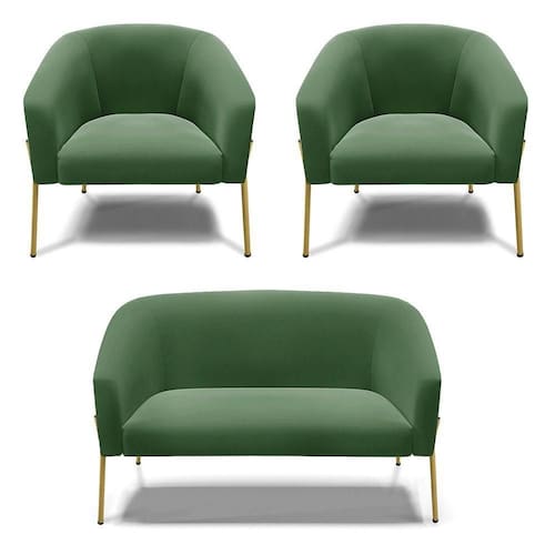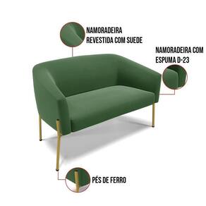 Sofá Namoradeira E 2 Poltronas Pé De Ferro Dourado Stella Suede D03 - D`rossi Cor Verde - Blush