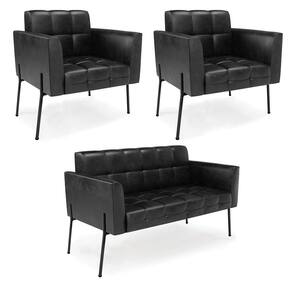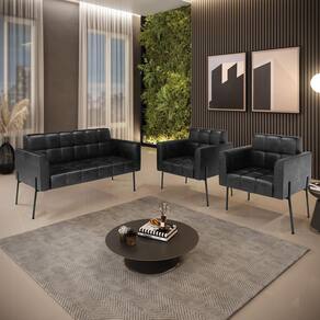 Sofá Namoradeira e 2 Poltronas Pé de Ferro Preto Elisa Corano D03 - D`Rossi
