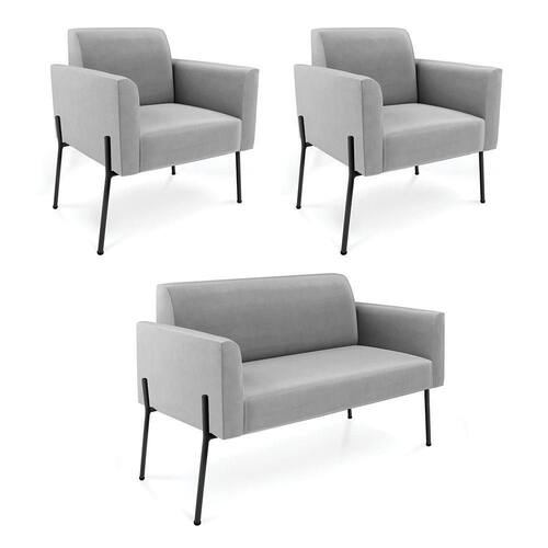 Sofá Namoradeira E 2 Poltronas Pé De Ferro Preto Marisa Suede D03 - D`rossi Cinza - Blush