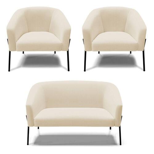 O Sofá Namoradeira 2 lugares com 2 Poltronas Stella é uma peça que combina elegância, conforto e durabilidade. Este conjunto tem um design moderno e sofisticado, com pés de ferro lateral preto e revestimento em tecido Linho Bege, que harmonizam com qualquer ambiente. Ele é ideal para sala de estar, recepções, mesa de jantar ou qualquer outro espaço que você queira decorar com estilo e bom gosto. Ele tem uma estrutura em madeira de reflorestamento eucalipto, que garante a resistência e a sustentabilidade do produto. Ele suporta até 120 kg de peso, podendo ser utilizado por pessoas de diferentes biotipos. Ele tem um acabamento reforçado e espuma de qualidade D23, que oferece maciez e aconchego. Tem pés em aço carbono e pintura eletrostática, que protegem o produto contra corrosão e desgaste. Ele tem assento com persintas elásticas, que proporcionam flexibilidade e conforto. O kit Stella é um produto de alta qualidade, beleza e funcionalidade. Ele é fácil de transportar, pois tem um peso leve e um tamanho compacto. O Sofá Namoradeira 2 lugares com Poltrona Stella é um produto que vai fazer a diferença na sua decoração e no seu bem-estar. Ele vai trazer charme, conforto e durabilidade para o seu ambiente. Aproveite essa oferta e leve para casa um Sofá Namoradeira 2 lugares com Poltrona qualidade por um preço incrível. Essa é a sua chance de ter um kit maravilhoso por um preço imperdível. Corra e garanta seu Sofá Namoradeira 2 lugares com 2 Poltronas antes que acabe o estoque!