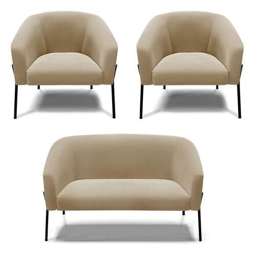 O Sofá Namoradeira 2 lugares com 2 Poltronas Stella é uma peça que combina elegância, conforto e durabilidade. Este conjunto tem um design moderno e sofisticado, com pés de ferro lateral preto e revestimento em tecido Suede, que harmonizam com qualquer ambiente. Ele é ideal para sala de estar, recepções, mesa de jantar ou qualquer outro espaço que você queira decorar com estilo e bom gosto. Ele tem uma estrutura em madeira de reflorestamento eucalipto, que garante a resistência e a sustentabilidade do produto. Ele suporta até 120 kg de peso, podendo ser utilizado por pessoas de diferentes biotipos. Ele tem um acabamento reforçado e espuma de qualidade D23, que oferece maciez e aconchego. Tem pés em aço carbono e pintura eletrostática, que protegem o produto contra corrosão e desgaste. Ele tem assento com persintas elásticas, que proporcionam flexibilidade e conforto. O kit Stella é um produto de alta qualidade, beleza e funcionalidade. Ele é fácil de transportar, pois tem um peso leve e um tamanho compacto. O Sofá Namoradeira 2 lugares com Poltrona Stella é um produto que vai fazer a diferença na sua decoração e no seu bem-estar. Ele vai trazer charme, conforto e durabilidade para o seu ambiente. Aproveite essa oferta e leve para casa um Sofá Namoradeira 2 lugares com Poltrona qualidade por um preço incrível. Essa é a sua chance de ter um kit maravilhoso por um preço imperdível. Corra e garanta seu Sofá Namoradeira 2 lugares com 2 Poltronas antes que acabe o estoque!