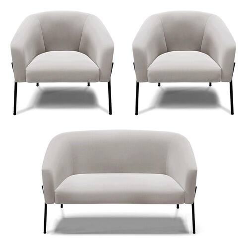 Você irá receber: 01 Sofá Namoradeira e 02 Poltronas - Entregue em: 02 Volumes