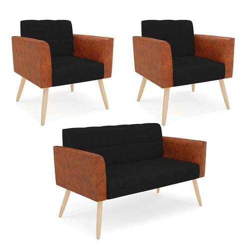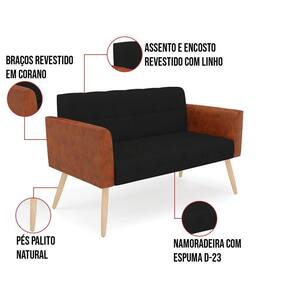 Você gosta de colecionar vários momentos memoráveis com sua família e amigos? Que tal recebê-los, com móveis de altíssima qualidade que só a D'Rossi tem? O Sofá Sofá Namoradeira e Poltrona Elisa é adequado para você! Seu design retrô é a grande tendência do momento. Pode ser utilizado em diversos espaços da casa, em salas, hall de entrada, quartos, cozinhas, varanda, sacada, escritório, dentre outros. Contém as seguintes características: A estrutura é feita de madeira de Eucalipto 100% de reflorestamento, e a Pés Palito l, além de ser resistente e durável, suporta em média até 120 kg. Assento, encosto e braços, contém enchimento de espuma D-23 e é estofada em tecido Corano Nozes com Linho, no tom Preto, que oferece muito conforto e resistência ao sentar, com aquela sensação de maciez e aconchego. Possui também, detalhes de costura no encosto e assento, resultando em um acabamento impecável, conferindo muito mais valor e elegância ao seu espaço. Para complementar a decoração com esse lindo Kit Sofá Namoradeira e Poltrona Elisa, a dica é utilizar mantas, almofadas ou vasinho de flor. E pronto, seu cantinho estará perfeito para descansar e relaxar! Aqui, você encontra várias opções, para que seus amigos e familiares se sintam acolhidos. Garanta já seu Kit Sofá Namoradeira e 2 Poltronas Elisa.