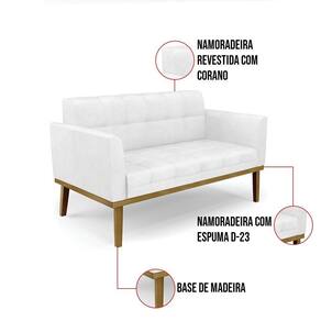 Você gosta de colecionar vários momentos memoráveis com sua família e amigos? Que tal recebê-los, com móveis de altíssima qualidade que só a D'Rossi tem? O Sofá Sofá Namoradeira e Poltrona Elisa é adequado para você! Seu design retrô é a grande tendência do momento. Pode ser utilizado em diversos espaços da casa, em salas, hall de entrada, quartos, cozinhas, varanda, sacada, escritório, dentre outros. Contém as seguintes características: A estrutura é feita de madeira de Eucalipto 100% de reflorestamento, e a Base de Madeira Fixa Castanho, além de ser resistente e durável, suporta em média até 120 kg. Assento, encosto e braços, contém enchimento de espuma D-23 e é estofada em tecido Corano, no tom Branco, que oferece muito conforto e resistência ao sentar, com aquela sensação de maciez e aconchego. Possui também, detalhes de costura no encosto e assento, resultando em um acabamento impecável, conferindo muito mais valor e elegância ao seu espaço. Para complementar a decoração com esse lindo kit Sofá Sofá Namoradeira e Poltrona Elisa, a dica é utilizar mantas, almofadas ou vasinho de flor. E pronto, seu cantinho estará perfeito para descansar e relaxar! Aqui, você encontra várias opções, para que seus amigos e familiares se sintam acolhidos. Garanta já seu kit Sofá Sofá Namoradeira e Poltrona Elisa.
